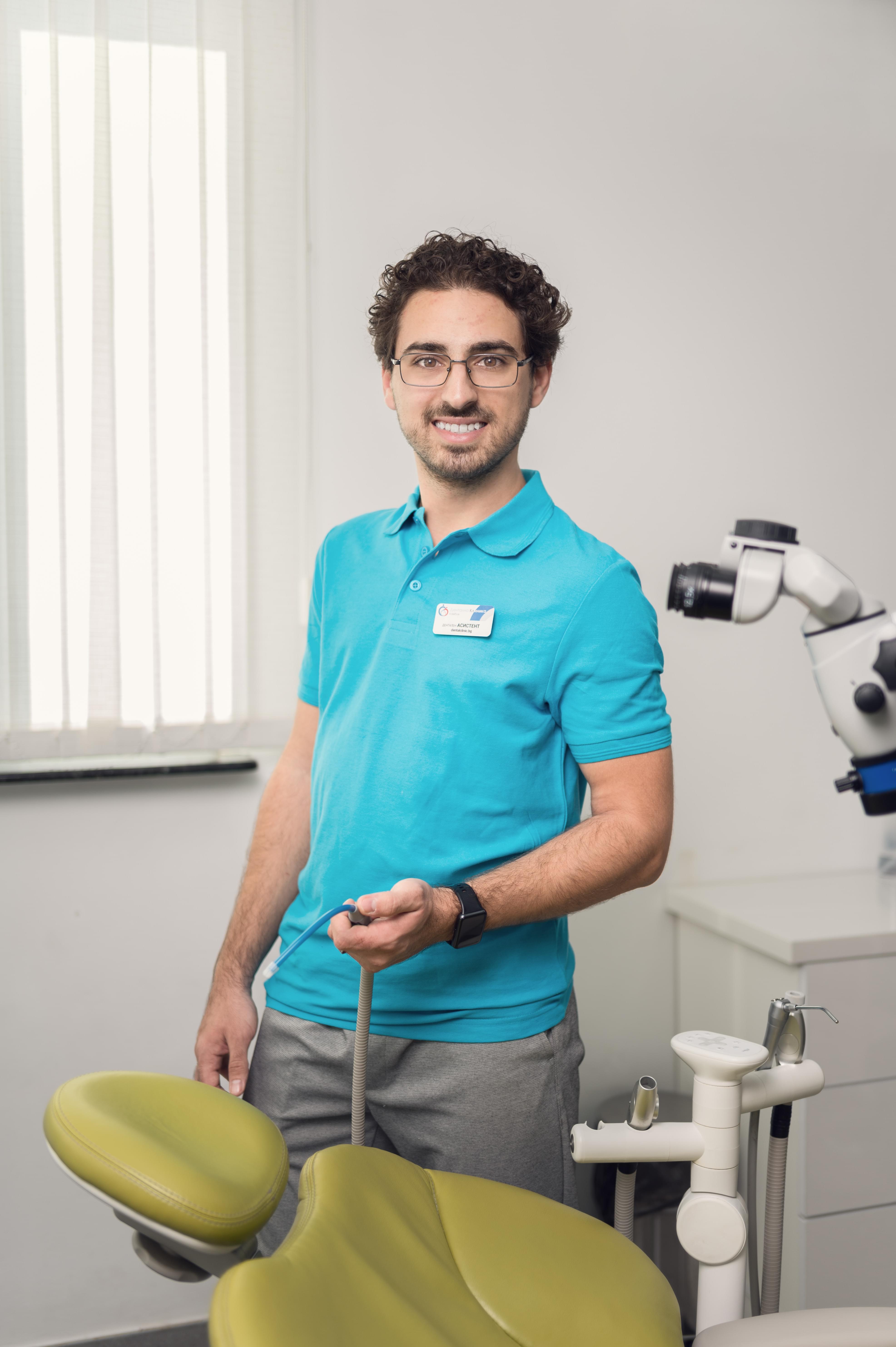 Емил е дентален асистент, който съчетава професионализъм, отдаденост и внимание, а умението му да предвижда нуждите на лекаря и пациента прави процеса на лечение още по-ефективен и комфортен. За него най-голямото удовлетворение е да види уверената усмивка на пациент, напускащ клиниката с лекота и благодарност.